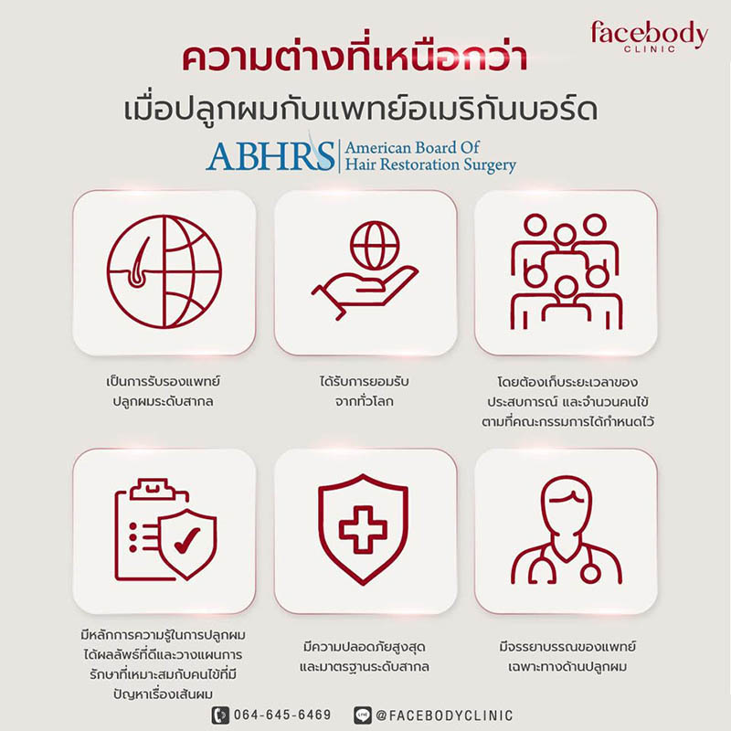 ABHRS เป็นวุฒิบัตรที่เน้นเฉพาะด้าน Hair Restoration Surgery ต่างจากบอร์ดสาขาอื่น เช่น ศัลยกรรมตกแต่งทั่วไป จึงถือว่าเป็นหนึ่งในมาตรฐานความเชี่ยวชาญเฉพาะทางด้านการปลูกผมโดยตรง