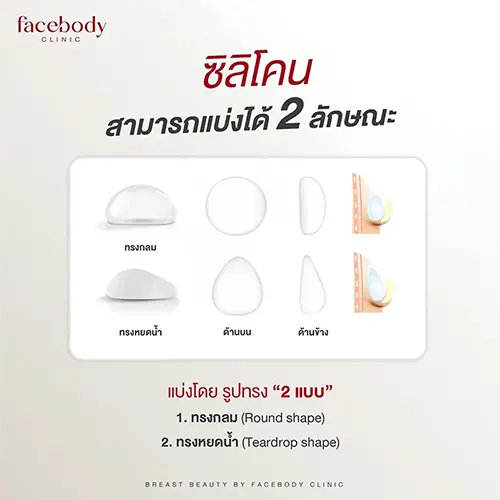 การทำศัลยกรรม เสริมหน้าอก จะต้องเลือกรูปทรงของซิลิโคนให้เข้ากับสรีระและปัญหาหน้าอกของแต่ละคน สำหรับซิลิโคนที่ใช้เสริมหน้าอกมีรูปทรง 2 แบบคือ