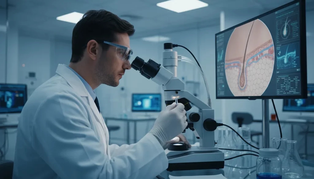 - การสกัด (Extraction): แทนที่จะโกนผมในบริเวณท้ายทอยให้สั้น แพทย์จะใช้หัวเจาะ FUE ชนิดพิเศษ (Specialized Punch) ที่ออกแบบมาให้สามารถเจาะรอบกอผมที่มีเส้นผมยาวอยู่ได้โดยไม่ตัดเส้นผม การทำเช่นนี้ต้องอาศัยความแม่นยำและประสบการณ์ของแพทย์สูงมาก เพื่อให้ได้เซลล์รากผมที่สมบูรณ์และไม่เกิดความเสียหาย (Low Transection Rate)