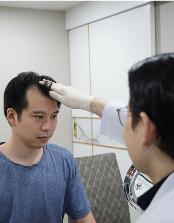 - ขั้นที่ 1 — ปรึกษาแพทย์ (ฟรี): ประเมินสภาพ Donor Area, วางแผนไรผม, กำหนดจำนวนกราฟที่เหมาะสม